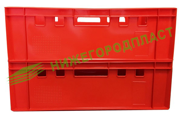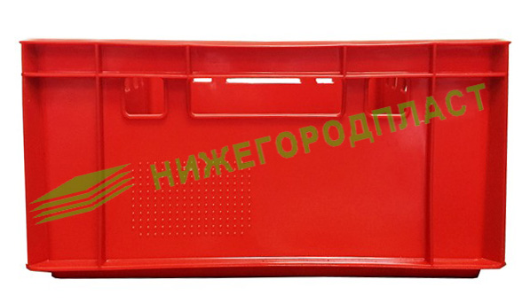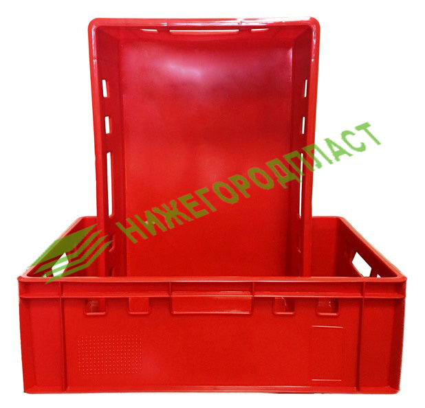 Пластиковый ящик Е2, соответствующий европейскому стандарту, используется для мяса, колбасы и различных полуфабрикатов, наиболее частое применение нашел во внутрицеховой логистике на мясных предприятиях. Тара оснащена ручками, сплошные дно и стенки помогают избежать подтеков и разлива жидкостей и надежно защищают продукты от механических воздействий. Штабелируемая конструкция обеспечивает их уверенную фиксацию друг на друге. Конструкция ящиков позволяет быстро охлаждать и замораживать содержимое. Данный ящик изготовлен из пищевого пластика, что позволяет использовать его на пищевых предприятиях.